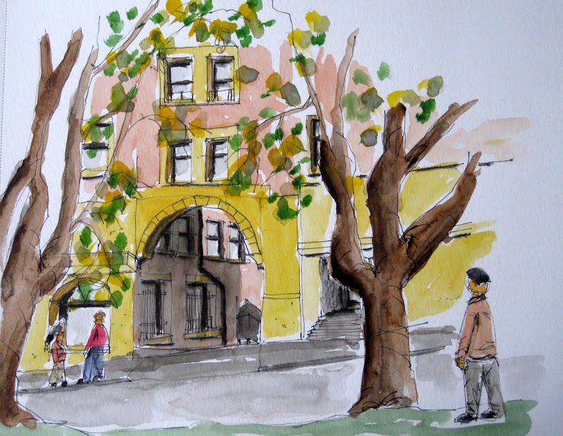 I went drawing with Dino Pai at the Vancouver Public Library. I used a dip pen as he did and peeked over his shoulder. You should check out his great drawings at http://urban-fairytales.com/home/?p=89